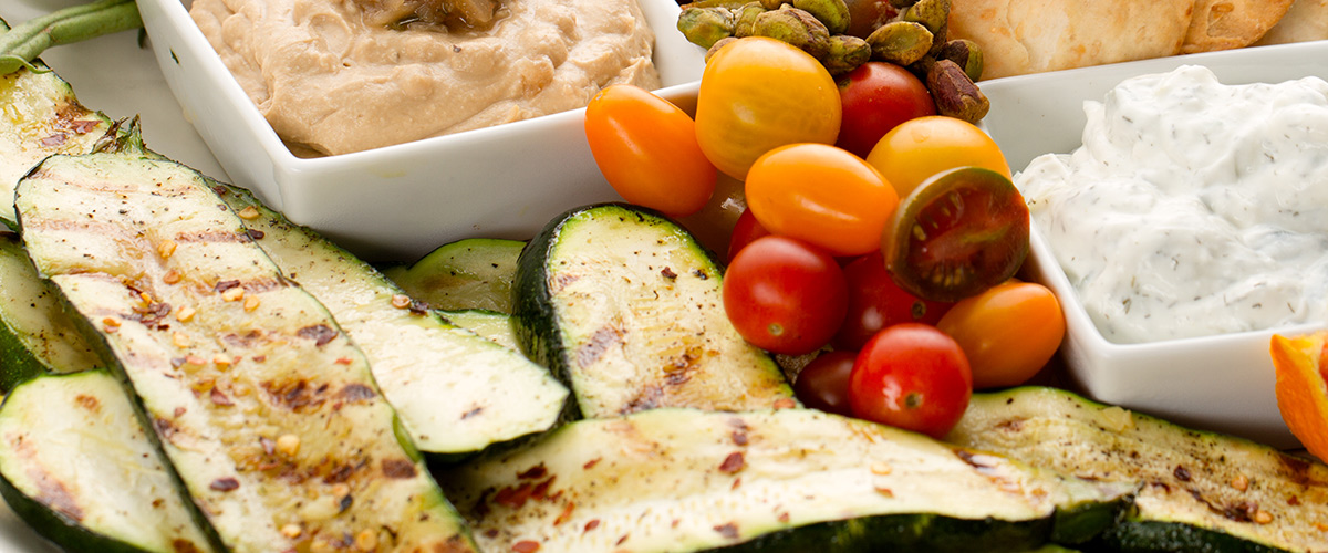 Grilled Zucchini with Topped Organic Balsamic Caramelized Onion Hommus