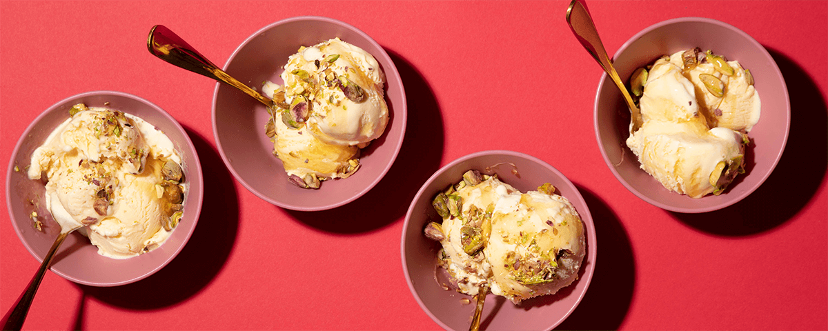 Add Cedar’s Labne, heavy cream, vanilla, pistachios, and honey to a mixing bowl and whisk together.